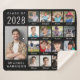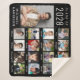 Graduation noir gardien sherpa couverture avec un collage photo de 17 du diplômé tout au long de leurs années scolaires. Ajoutez vos légendes personnalisées en script blanc sous chaque photo.