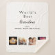 Faites votre propre collage photo de famille unique. Utilisez quatre, quatre de vos photos préférées de votre grand-mère, de ses enfants, petits-enfants, de votre famille, de vos amis ou de votre animal de compagnie! Avec le texte : World's Best Mom. Personnalisez et ajoutez vos noms. Moderne, féminine et glamour avec élégante arrière - plan blanche, texte noir. Parfait comme cadeau d'anniversaire, de Noël ou de fête des mères. Cette couverture est également disponible dans notre magasin avec un arrière - plan noir.