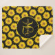 Couverture Sherpa Gros tournesol Monogramme jaune et noir