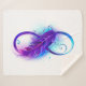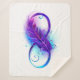 Infinity symbole with a beautiful feather painted in purple and blue bright colors on white background