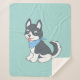 Couverture Sherpa Joli dessin Husky Chien chiot sur Green
