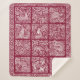 Offrez une couverture unique et confortable pour Noël et les vacances d'hiver! Les tons bordeaux et blanc se marient dans un motif boisé rustique mais élégant qui rappelle une courtepointe cosy, mais il est sur une couverture sherpa douillette ! Inspiré de motifs de porcelaine antiques, fleurs et feuilles entourent une variété de créatures forestières - cerf, ours, renard, lapin lapin, oiseaux et plus encore. Imaginez-le dans un lodge ou un cabine, ou dans n'importe quelle chambre de votre maison pour un accessoire chaleureux et accueillant. Parfait pour le voyage aussi - et des bonbons pour les yeux pour tout enfant. Un motif de fleurs borde les blocs d'animaux. OEuvre d'art et de design fantastique et unique de Tuzi Williams.