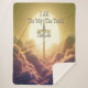 Croix d'or parmi les nuages fluides avec design typographique.