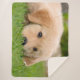 Un chiot de golden retriever se reposant et refroidissant dans un pré, un tel cutie Goldie chiot-eyed avec un visage songeur. Cette grande couverture de sherpa est une idée enchanteresse de cadeau pour des amoureux de les chiens. Une jeune photo rêvante de portrait de chienchien prise par Katho Menden. http://www.zazzle.com/kathom_photo -