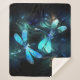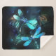 Deux libellules transparentes, lumineuses, turquoise, artistiquement dessinées sur l'arrière - plan de nuit avec des algues luminescentes et des lucioles. libellule éclatante.