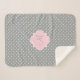 Couverture Sherpa Monogramme Gris, Blanc et Pastel Pink Polka Dot