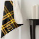 Cette couverture en tartan plaid présente un design noir et or audacieux et classique, créant un look chaleureux et élégant. Les lignes croisées forment un motif tartan à la grille, à la texture riche, qui ajoute de la sophistication. Une boîte monogramme personnalisable est positionnée en bas, permettant de remplacer les initiales (actuellement "MW") par les vôtres, ce qui en fait un cadeau réfléchi ou un accessoire maison personnalisé.