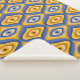 Couverture psychédélique aux couleurs bleu indigo motif bizarre et jaune nid d'abeille. Cette motif éclectique et ludique ressemble à un style rétro moderne du milieu du siècle grâce à ses formes géométriques.