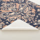 Motif symétrique sans couture dans le style Damask. Des lièvres qui sautent, un ornement de plante dans les tons beiges sur un arrière - plan bleu foncé.