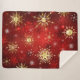 Couverture Sherpa Noël Golden Snowflakes sur Arrière - plan rouge