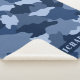 Parfait pour tous ceux qui aiment camoufler cette couverture Sherpa motif camo bleu vous gardera douillet et chaud les nuits fraîches. De l'autre côté du bas sur une bande bleu marine est votre nom dans la typographie au pochoir bleu clair pour vous de personnaliser. Conçu par l'artiste ©Susan Coffey.