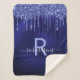 Couverture Sherpa Nom monogramme de la parties scintillant bleue mar