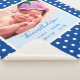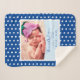 Célébrez la naissance de votre petite fille avec cette couverture de sherpa bébé nouveau-né. Cette adorable couverture a des statistiques de naissance (date, heure, longueur et poids), ainsi que le prénom et le nom et la photo du bébé. L'arrière - plan est d'un bleu foncé avec des pois blancs. Cette couverture est une tenue parfaite et ajoute une belle touche personnelle à une pépinière. Il fait également un grand cadeau aux nouveaux parents!