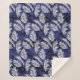 Feuilles de palmiers blancs sur un arrière - plan bleu indigo, recouverts de frondes de palmiers plus bleues.