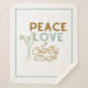 Une couverture Sherpa pour les amateurs de musique country présente le texte "Peace Love & Country Music" avec un bouquet de marguerite sur en vichy arrière - plan