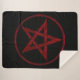 Pentagramme rouge, inversé, texturé en cercle, sur arrière - plan noir. Symbole occulte 666