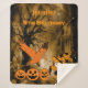 Une jolie petite couverture pour la fille d'anniversaire à Halloween. Parfait pour un cadeau, ce design présente une jolie petite sorcière errante avec ses compagnons amicaux Jack O lanternes, corbeau et toiles avec l'arrière - plan d'un arbre sombre. Le texte peut être facilement customisé.