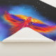 Phoenix flammé volant à travers l'espace sur un nuage de nébuleuse bleu et violet dans un ciel étoilé. Un amas d'étoiles scintillant forme la constellation de phoenix. Orientation horizontale. ♡ Idyllfire