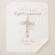 Élégante couverture sherpa pour votre première communion sainte avec une croix florale sur un simple arrière - plan blanc. Personnalisez avec le texte, le nom et la date. Fait un cadeau réfléchi pour la confirmation.