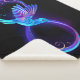 Glowing, purple infinity symbole with flying, luminous, blue hummingbird on black background. Néon.