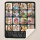 Créez une couverture de sherpa pour une tante préférée avec 16 cadres carrés arrondis contenant des photos de ses nièces et neveux, de sa famille, de ses animaux de compagnie ou d'autres souvenirs spéciaux et deux lignes de texte personnalisable, comme "We Love You Tante" et les noms de ses membres de famille, dans une élégante typographie blanche sur un arrière - plan noir.