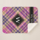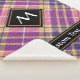 Design rose, jaune doré et écossais bleu. Motif sans couture. Texte et monogramme personnalisés.