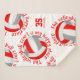 Cette jolie couverture en polaire sherpa à thème volleyball comporte 5 volleyball rouge, gris et blanc arrangés aléatoirement avec le texte, "Le terrain de volleyball est mon endroit heureux" en rouge encerclant chaque volleyball dans une police typographique amusante, le tout sur un arrière - plan blanc - son nom et son numéro de maillot sont personnalisables - par katz_d_zynes