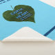 Texte bleu, "TERRE et COEUR sont épelés avec les mêmes lettres", superposé sur une feuille verte en forme de coeur. Ajoutez votre propre texte supplémentaire. Vous pouvez modifier la couleur arrière - plan, ainsi que la couleur de votre texte supplémentaire et des bandes.
