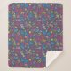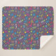 Physique Sherpa couverture en toison avec des lettres ‘ PT’ en lettres de couleur vive sur un arrière - plan bleu marine.
