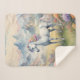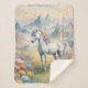Une image rêveuse d'une licorne blanche avec un arc-en-ciel principal debout dans un champ de fleurs sur une couverture sherpa. Dans l'arrière - plan sont des montagnes majestueuses.Le cadeau parfait pour donner à ceux qui aiment les licornes magiques et mystiques. Contient du contenu génératif.