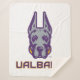Le logo de la mascotte de l'Université d'Albany Great Dane présente une représentation stylisée de la tête d'un grand Danois. Le chien est illustré de lignes vives et audacieuses en violet et gris, lui donnant une expression féroce et confiante. Les oreilles sont hautes, symbolisant la vigilance et la force. Sous la tête du Grand Danois se trouve le mot "UAlbany" écrit en caractères d'or gras et bloquants, surligné de violet, renforçant l'image de marque de l'université. Cette conception représente les équipes sportives d'UAlbany, mettant en avant le pouvoir, la loyauté et la détermination.