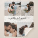 This beautiful gift is perfect for a newly married couple. It incorporates four of their favorite photos, along with their names, wedding location, and date. Featuring a combination of calligraphy script and sans serif font, this blanket is sure to become a cherished keepsake.