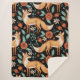 Snuggle up in enchanting style with this beautiful woodland-themed sherpa blanket. Featuring a charming repeating pattern of hand-painted watercolor foxes set against a contrasting black background, this blanket brings a touch of nature's magic into your home. The adorable foxes are surrounded by a lush arrangement of folk-art-inspired flowers in shades of burnt orange and cream, with elegant teal foliage. The ultra-soft and cozy sherpa fleece backing makes this blanket irresistibly warm and comfortable. It's the perfect accent for a nursery, a cozy addition to your living room sofa, or a thoughtful gift for any fox lover or fan of rustic, whimsical decor.