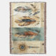 Aztec native American aquarelle conception tribale de 3 couleurs plumes bloquées et médicament bâton sur le bleu et le sable du désert arrière - plan.