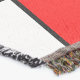 Cette couverture jetable a un design moderne du milieu du siècle d'un look de vitrail avec des lignes noires et des cercles remplis de couleurs primaires et secondaires.