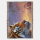 Magnifique Blue Eyed Tiger Paysage montagneux et fleurs roses AI produit art AI Art créé par minx267