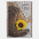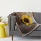 Le charmant Country Sunflower et dentelle Mariage occidental Throw peut être personnalisé avec les noms de la mariée et du marié et leur date de cérémonie de mariage pour créer un cadeau de conservation durable. Cette couverture de mariage rustique chic et décontractée, à la fois informelle et élégante, est ornée d'une photographie florale d'une paire de bottes de cowboy en cuir marron, de fleurs de tournesol jaune et de mouchoirs en lin vintage en dentelle et d'un arrière - plan en bois de grange marron.