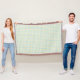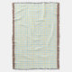 Two images show a woven throw blanket with a pastel yellow and blue checkered pattern. It has fringe edges and is displayed horizontally and vertically.