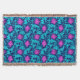 Jetez dans un vintage William Morris motif damassé floral de fleurs et de feuilles d'anémones, numériquement rehaussé et coloré - turquoise / bleu paon feuilles, et des fleurs dans les tons rose magenta sur un bleu marine foncé / indigo arrière - plan