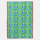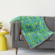 Jetez la couverture dans un vintage William Morris motif textile de fleurs et de feuilles stylisés en pimpernel - fleurs dans un dégradé de bleu cérusé profond à clair, avec feuilles vert émeraude, sur un arrière - plan vert citron clair