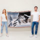 Un loup dans la neige de l'hiver avec un château derrière le loup.
