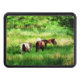 Chevaux broutant dans une prairie estivale. Aquarelle. Pays de Galles.