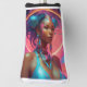Cette image est un portrait numérique futuriste et dynamique d'une femme, mêlant éléments technologiques et régalité traditionnelle. La femme est ornée d'accessoires complexes et cybernétiques, dont un couvre-chef métallique et des boucles d'oreilles qui ont un design numérique, de type circuit. Ses cheveux sont stylisés dans un updo sophistiqué, avec des sections qui semblent être faits de matière métallique brillante. L'arrière - plan dispose d'un motif circulaire néon qui encadre son visage, rehaussant l'esthétique futuriste. Son expression est calme et confiante, et elle porte un vêtement élégant et moulant qui complète le thème high-tech.