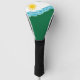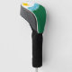 Golf Head Cover avec un design avec le drapeau de Spokane, Washington. Un drapeau blanc et vert aux lignes bleues symbolisant la rivière Spokane et les chutes Spokane et un soleil jaune