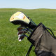 This goose design golf club head cover is an accessory that you slide over the head of a golf club for protection against knocks whilst sitting in your golf bag. Made out of polyester, cotton, and marine vinyl with a choice of different piping colours. You can customise this golf club head cover with any text. Should you require any help with customising then contact us through the message link on this page. Geese design golf club head cover.