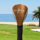 Cette élégante couverture de tête de golf personnalisée présente un monogramme et un prénom en écriture moderne beige et blanc sur un arrière - plan en métal brossé orange brûlé.