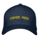 Covfefe Press: Flexfit Wool Cap Embroidered (Navy). Text on Front of Cap.