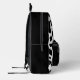 Black and white cow hide animal print school backpack with name. Unisex design for men and for women. Suitable for kids and adults. Great for cowboy / cowgirl country farm themes.