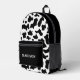 Cow Animal Print Spotted Black & White Name Printed Backpack
