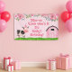 Moo-ooove over—there's a birthday to celebrate! This sweet pink barnyard birthday banner features a party-ready cow in a polka-dot hat, a cheerful pink barn, and lush watercolor florals along the top. Set against a soft pink background with playful farm details, this banner is perfect for a little girl's 2nd birthday (or any age!). Both the name and age are fully customizable, making it a special and personalized backdrop for your party entrance, dessert table, or photo booth.